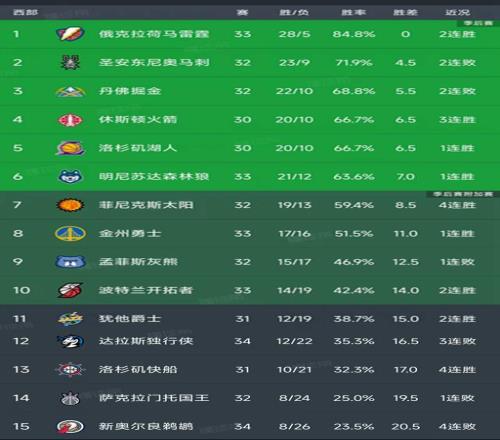 北京时间12月30日,今日的NBA常规赛继续激战,西部的争夺相比于东部更加残酷,所以我们看看西部球队的表现和最新积分榜变动!