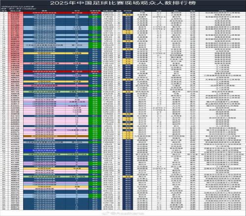 这份表单中的98场比赛,合计总数达到了470万人次。这个巨大的数字不仅体现在职业联赛的稳步提升,更凸显了业余赛事遍地开花的蓬勃生态。从国家队到“苏超”“湘超”,从职业赛场到业余比赛,足球正在以更接地气的方式融入中国人的生活。这份表单背后,是赛事组织、球迷文化与地方认同共同织就的足球新图景——中国足球的看台,正被越来越多普通人的热情点亮,未来更加值得期待。