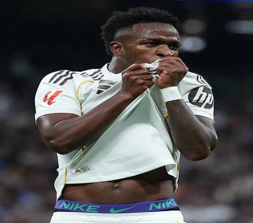 第15分钟,维尼修斯左路得球内切到禁区内右脚斜射破门,1比0!
